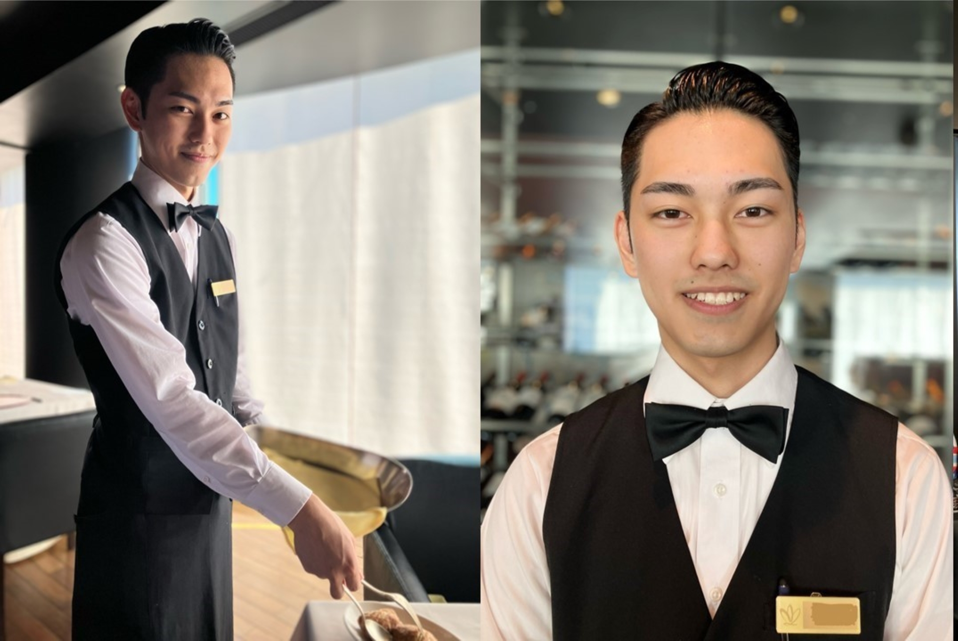 宮崎観光ホテルのレストランで、サービススタッフとして、お客様にお料理やお飲み物の提供をしています。