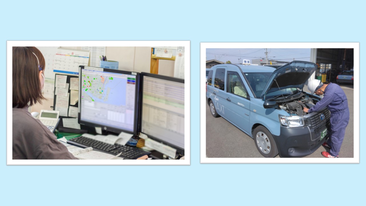 北は高千穂、南は串間まで県内11か所に事業所を展開し、県内一円でタクシーの運行をしております。タクシーの運行だけにとどまらず、地域間の移動手段として行政委託を受けているコミュニティバスの運行や、支援学校や小学校の通学等に必要なスクールバスの運行など、日常の様々な場面で社会インフラを支えております。